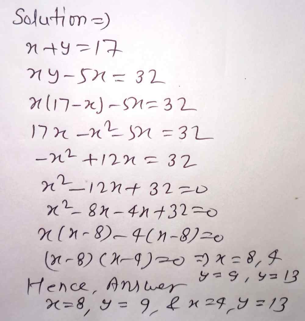 Solve The Equations X Y 17 Xy 5x 32 Tutorke