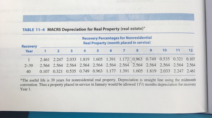 Table 11 4 Macrs Depreciation For Real Property Real Chegg Com